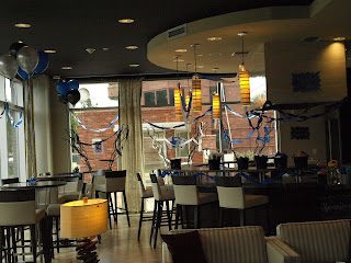 We had the party at this gorgeous clubhouse that a friend's friend's mom reserved for us. Y'all, this place was so nice and fancy that I was tempted to move in. It had another side room where we set the magician's show up. And since Schlotzsky's is Mr. B's favorite sandwich, we ordered a tray of food, threw some chips and popcorn in to some magic hats, and let the paid magician do the rest.