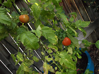 And in other news, our tomato plant lives on! Mr. B and I tried our hands at farming some vegetables this summer. There’s basil and red peppers in this gigantic pot too. The basil has fared pretty well. The peppers, not so much. And our cucumber plant has taken a turn south. But we’ve managed to get a few juicy and tasty tomatoes out of the whole deal. Too bad it’s not one of the three vegetables my children actually eat.